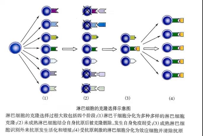 基于克隆選擇學(xué)說,機(jī)體自身的組織抗原成分在胚胎期就被相應(yīng)的細(xì)胞克隆所識別,相應(yīng)的未成熟淋巴細(xì)胞與機(jī)體自身抗原結(jié)合后被克隆刪除,發(fā)生自身特異性免疫耐受,即賦予機(jī)體免疫系統(tǒng)區(qū)分“自我”和“非己”的能力。值得一提的是,在胚胎期任何進(jìn)入機(jī)體的抗原都將被視作自身成分而產(chǎn)生免疫耐受。