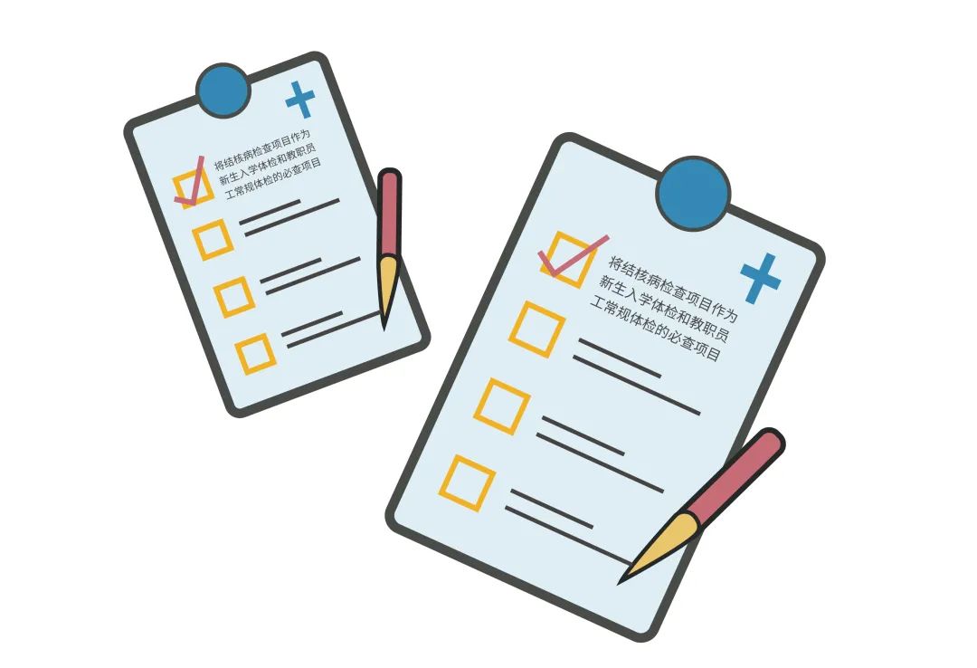 為避免結(jié)核病傳染源進(jìn)入到校園,造成校園內(nèi)部傳播,需對進(jìn)入學(xué)校的學(xué)生和教職工開展結(jié)核病健康檢查,并將體檢結(jié)果納入學(xué)生和教職員工的健康檔案。實現(xiàn)“關(guān)口前移”。
