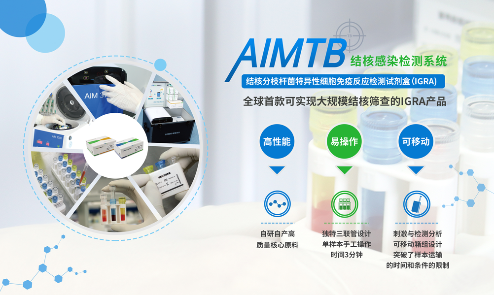 基于全免疫體外診斷核心技術(shù)平臺,雷德倍爾創(chuàng)新研發(fā)的AIMTB結(jié)核感染檢測系統(tǒng)已經(jīng)于2019年獲得國家藥監(jiān)局注冊批準(zhǔn)上市。AIMTB基于IGRA技術(shù),實(shí)驗(yàn)使用的結(jié)核分枝桿菌基因中含有特異性的RD1區(qū)域的E6和C10兩個(gè)強(qiáng)免疫原性抗原,檢測結(jié)果具有相當(dāng)高的敏感性和特異性。
